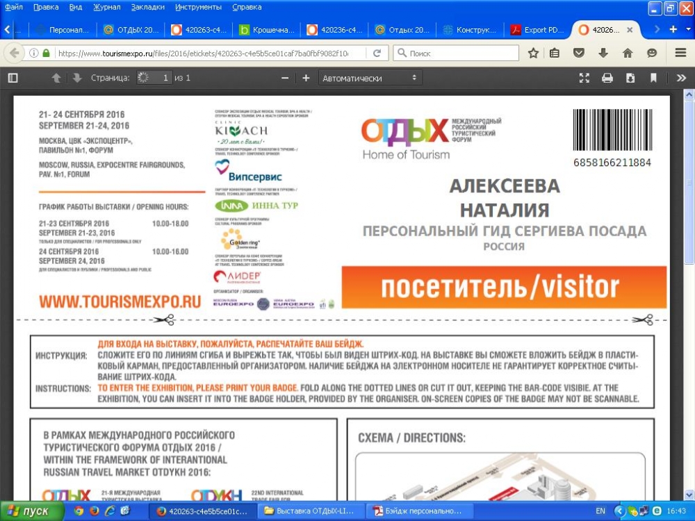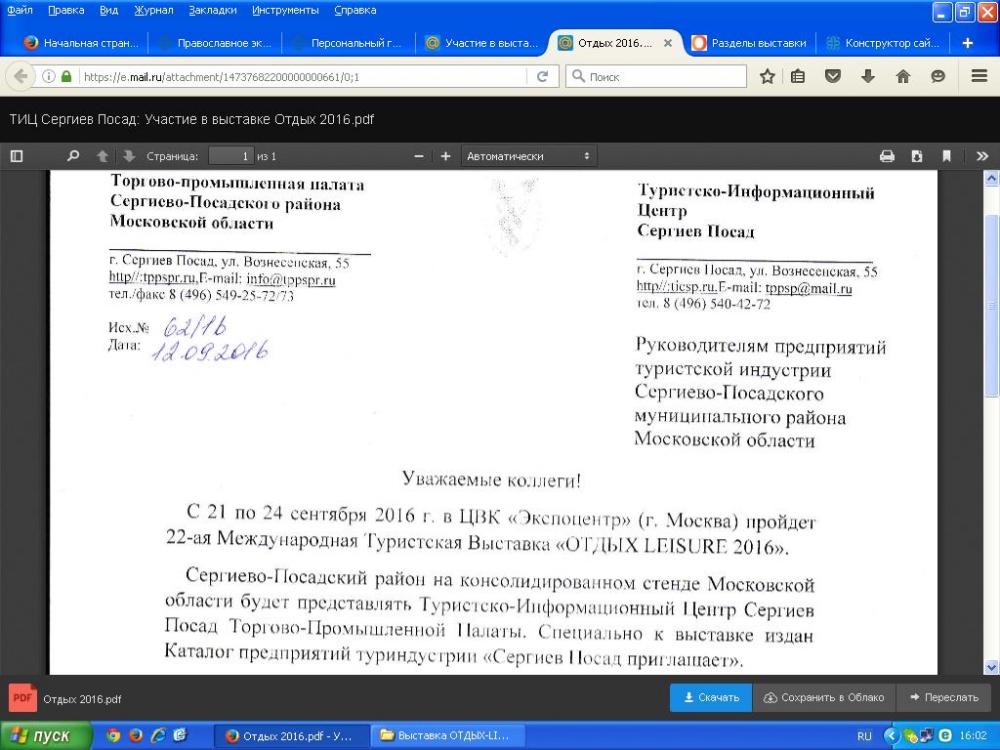 на Международную Выставку в Москве "ОТДЫХ "LEISURE" 2016"