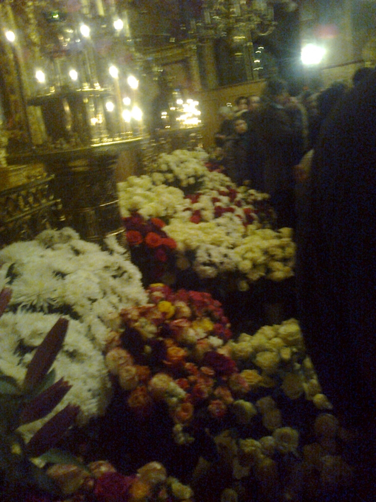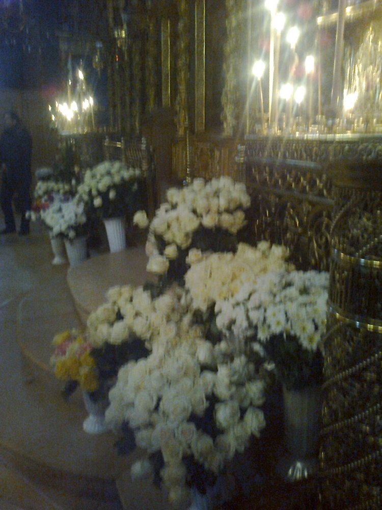Батюшка очень любил розы. Была бы возможнось, то сделала бы роскошный венок из роз вокруг гроба... Но это не каждому подъёмно, увы...