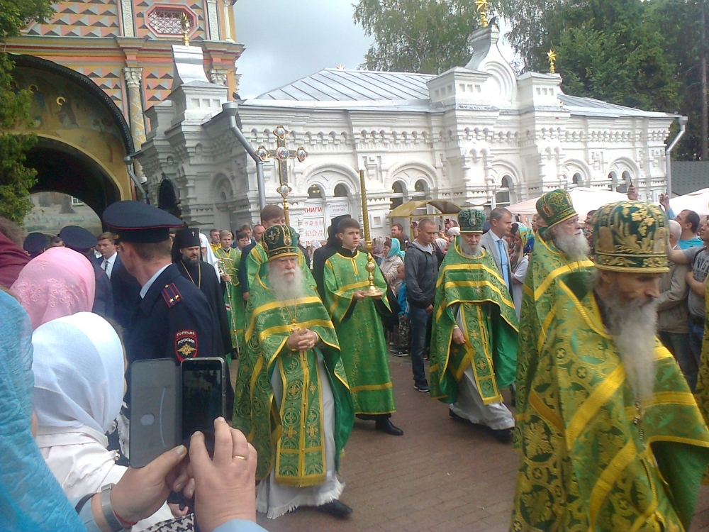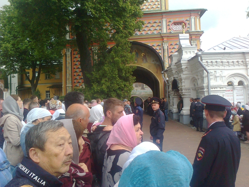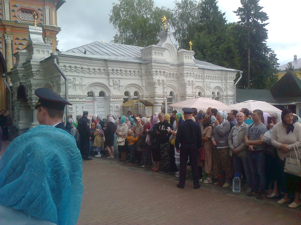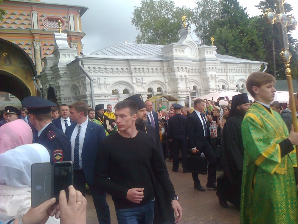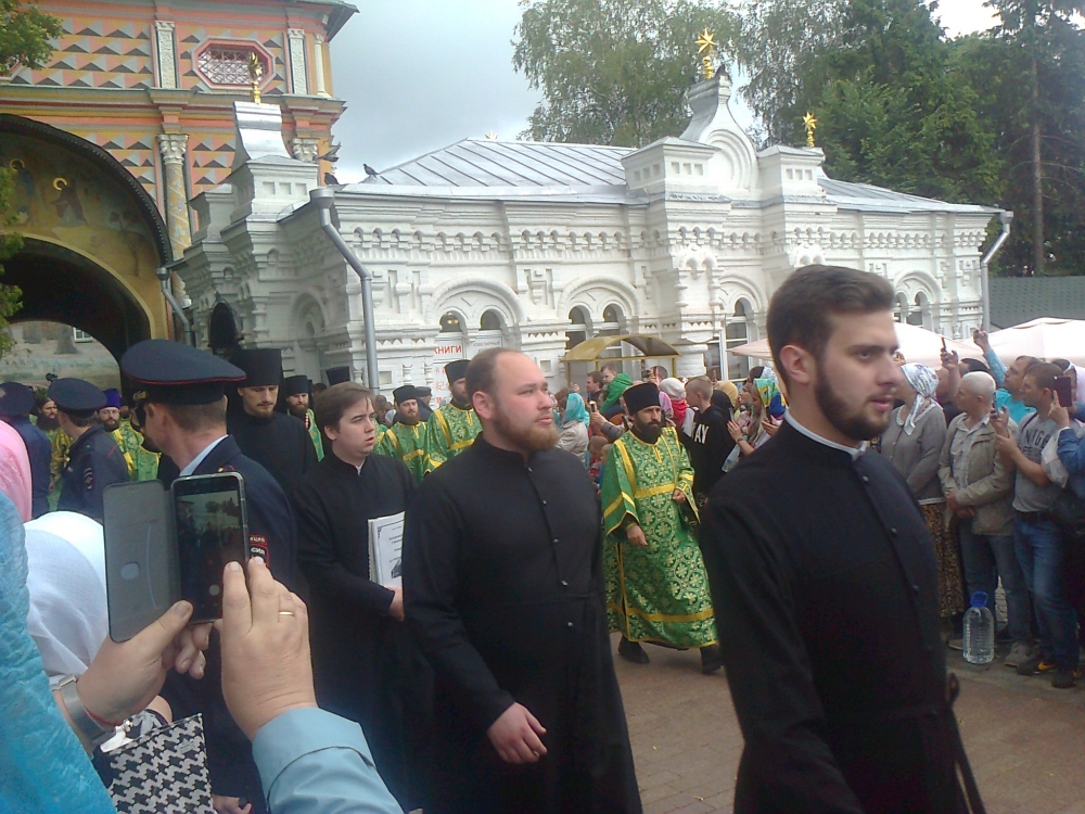 На праздник прибыл Святейший. Встречали его древним чином приветствия от Красных Ворот - по обе стороны построились стройными рядами монахи и певчии во главе с хоругвиями; пели приветственные и праздничный тропари. Далее от Красных Ворот чинно шествие направилось в Троицкий собор к мощами преп. Сергия, после чего в Успенский собой на богослужение патриаршим чином при архиерейском сослужении. Удивительно и очень радостно было среди гостей, прибывающих на праздник, узнать совсем рядом с собой Андрея Малахова, ведущего телепередачи "Привет, Андрей!".