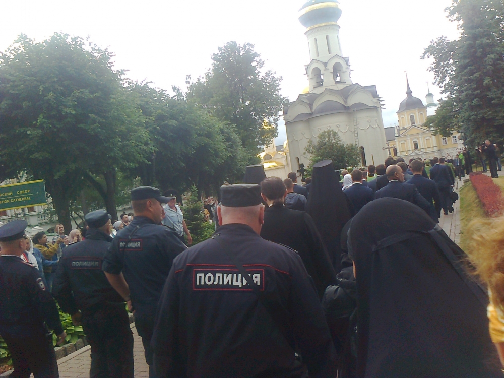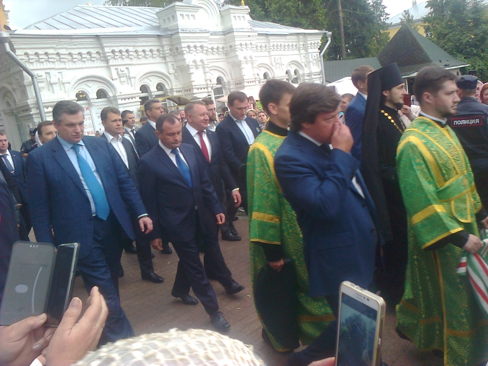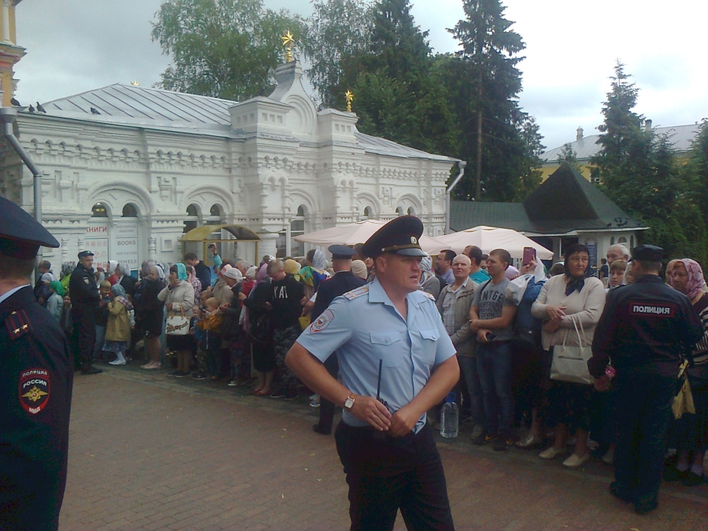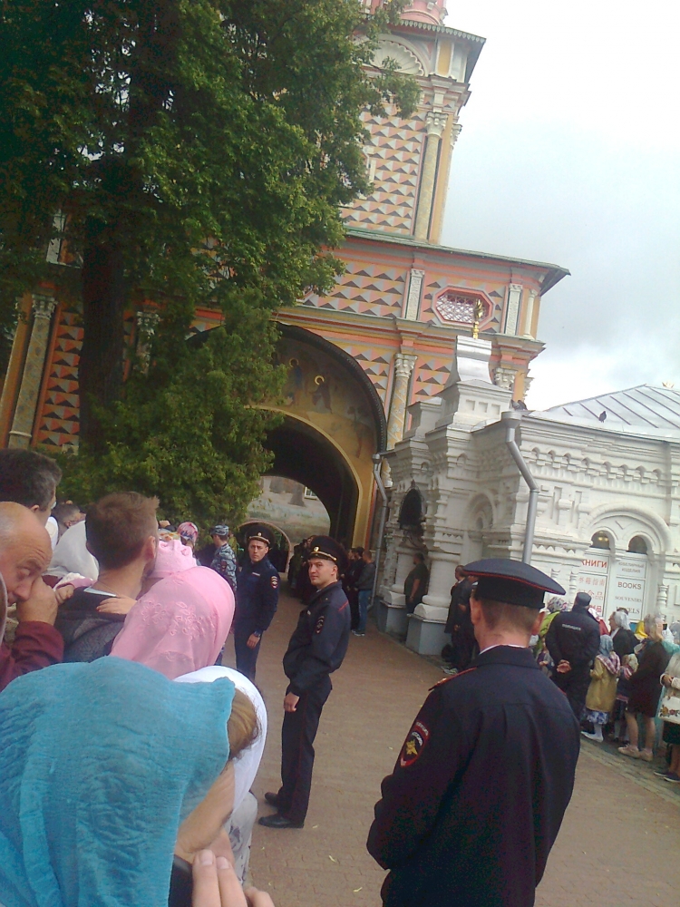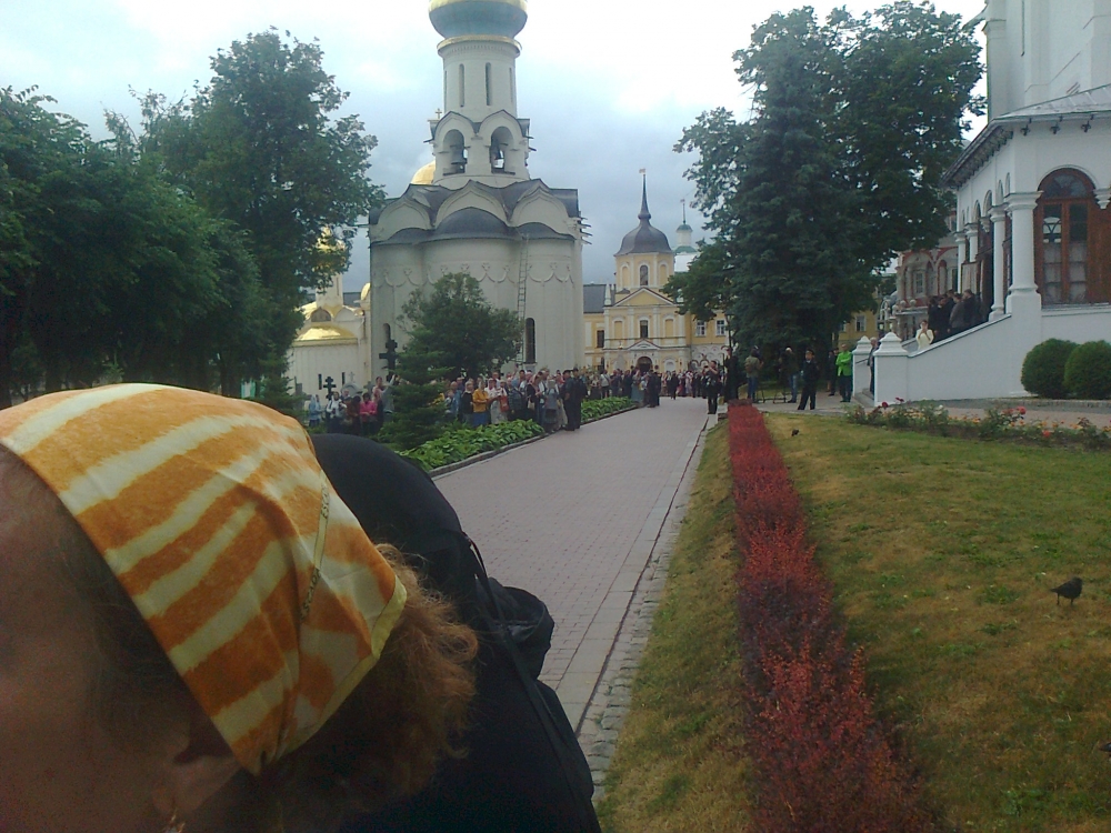 На праздник прибыл Святейший. Встречали его древним чином приветствия от Красных Ворот - по обе стороны построились стройными рядами монахи и певчии во главе с хоругвиями; пели приветственные и праздничный тропари. Далее от Красных Ворот чинно шествие направилось в Троицкий собор к мощами преп. Сергия, после чего в Успенский собой на богослужение патриаршим чином при архиерейском сослужении. Удивительно и очень радостно было среди гостей, прибывающих на праздник, узнать совсем рядом с собой Андрея Малахова, ведущего телепередачи "Привет, Андрей!".