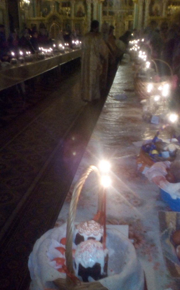 Сугубая молитва страстной недели завершилась и освящены кулич с красными яйцами.