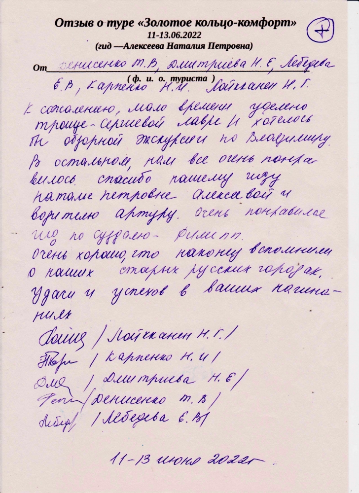 19.06.22 г. Отзыв об экскурсии по старому городу Сергиева Посада Натальи Васильевны Свистуновой