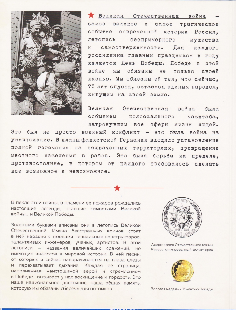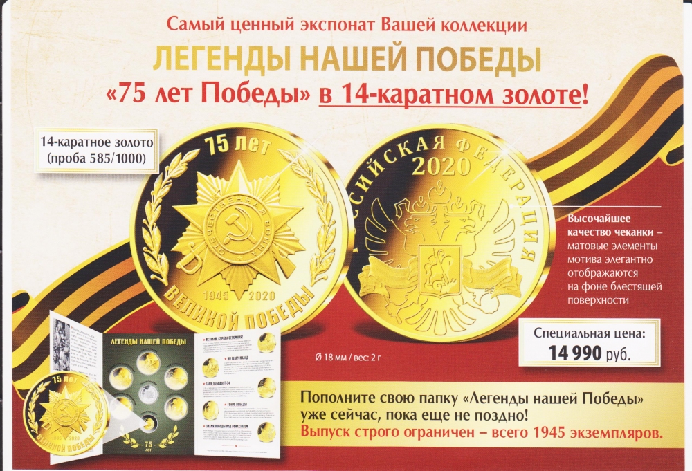 15.07.19 г. Подарок от Императорского монетного двора - юбилейная медаль в честь 75-летия Великой Победы над фашистской Германией в 1945 г.