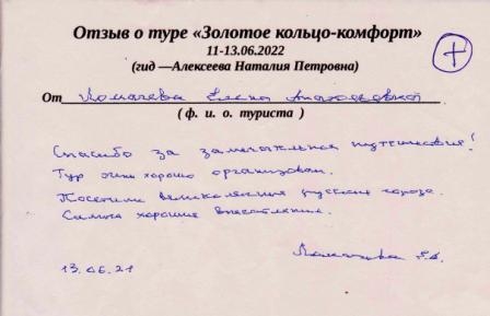 13.06.22 г. Отзывы туристов, побывавших на экскурсионном маршруте