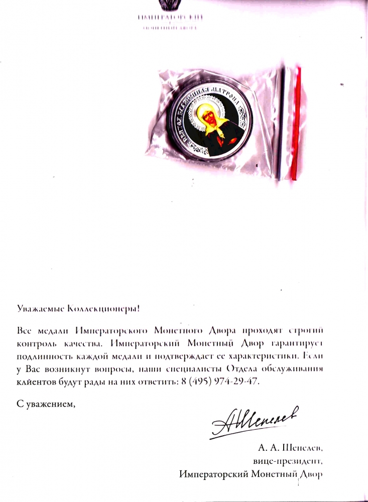 30.05.2022 г. Подарок от Императорского Монетного Двора - позолоченная медаль